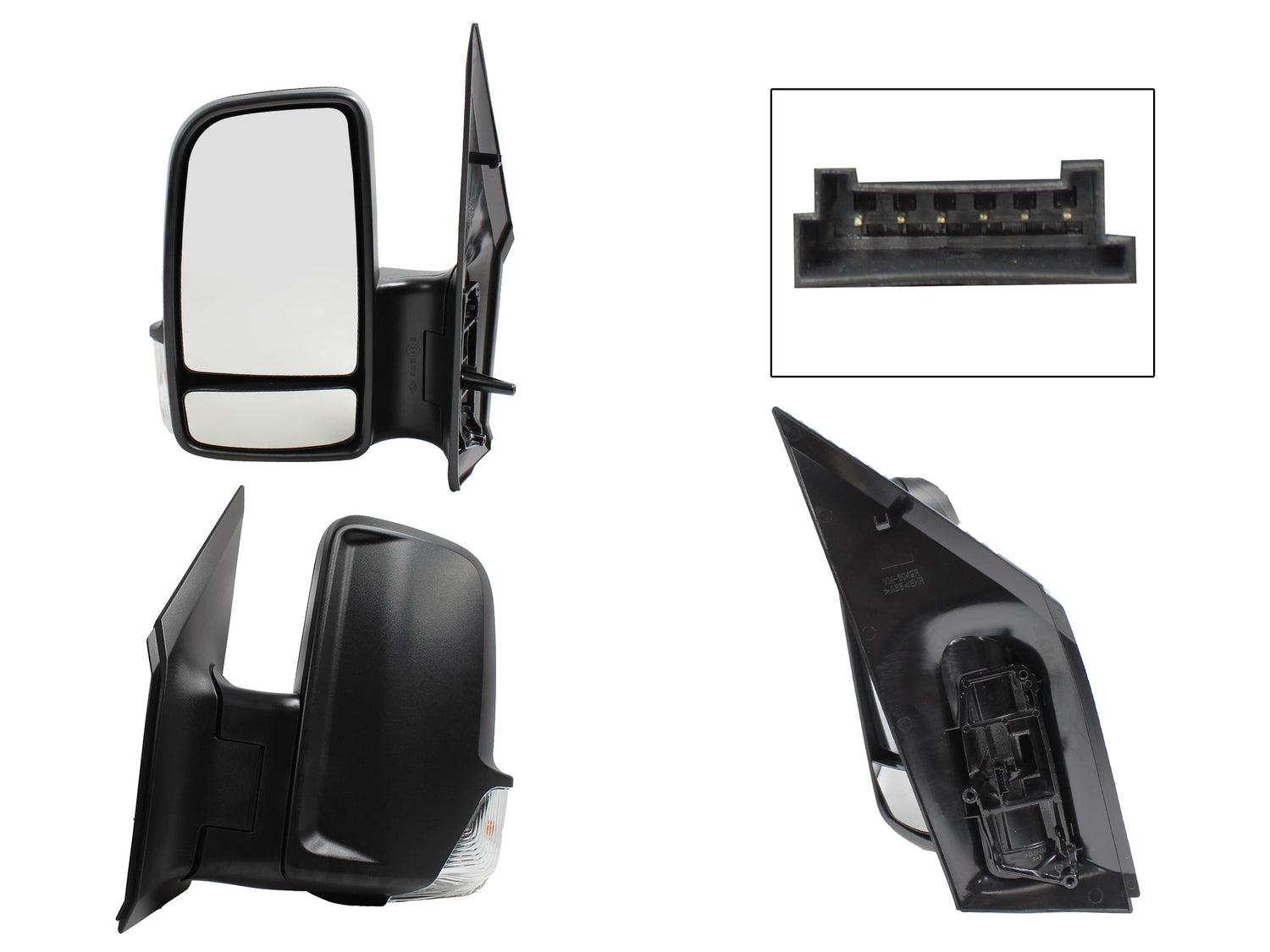 ESPEJO IZQ ELECT NEGRO POROSO C/LUZ DIRECCIONAL (2 LUNAS) (6PINES) (VW CRAFTER 08-18)