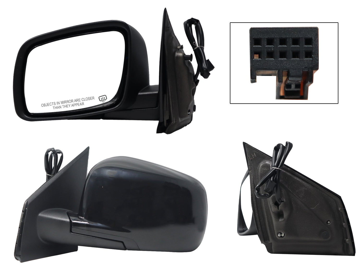 Espejo Izq Elect Negro P/Pintar C/Desempañante (5Pines) (Base Int Metalica)