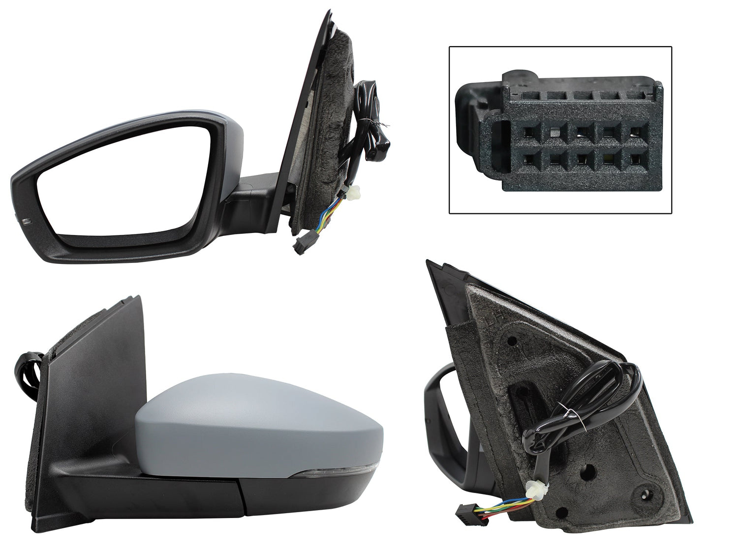 Espejo Izq Elect Gris P/Pintar C/Luz Direccional C/Desempañante (6Pines) (Polo 13-22)