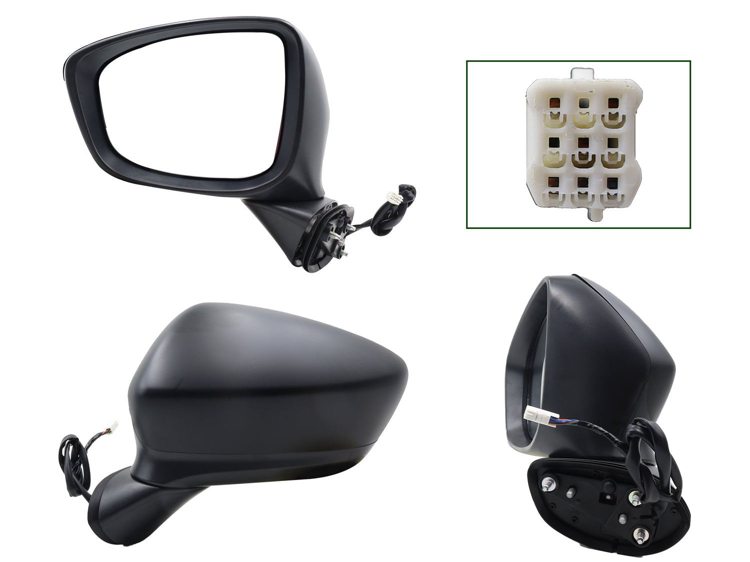 Espejo Izq Elect Negro P/Pintar C/Luz Direccional C/Desempañante (6Pines)